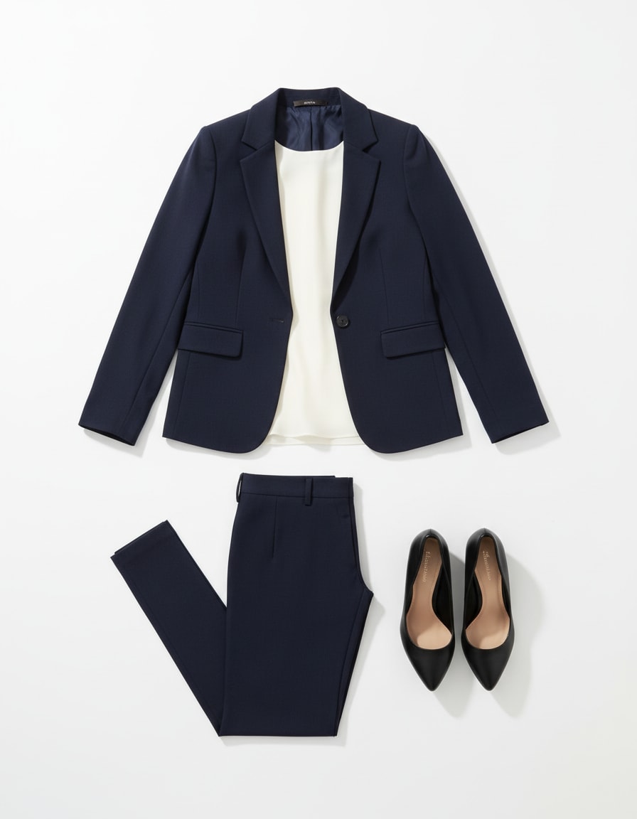 - Women: Blazer with tailored trousers or a pencil skirt; blouse or shell; closed-toe heels or flats. Neutral colors (navy, black, gray, white) are safe.